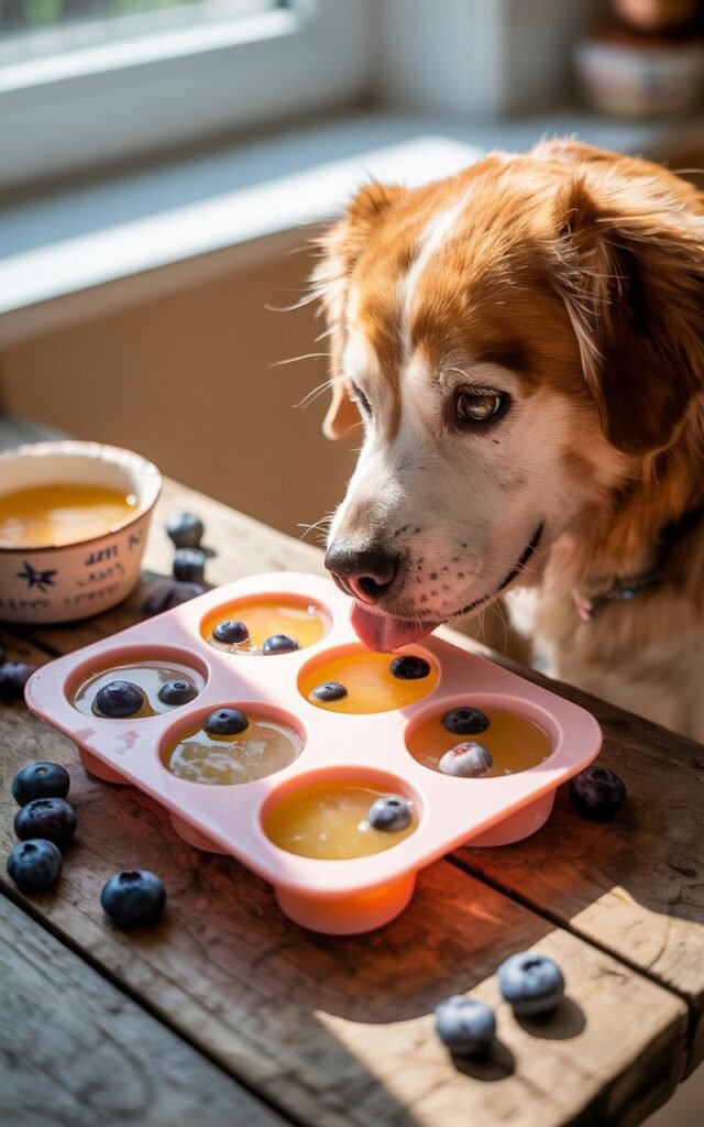3. Chicken Broth & Blueberry Pupsicles (Savory & Surprising)