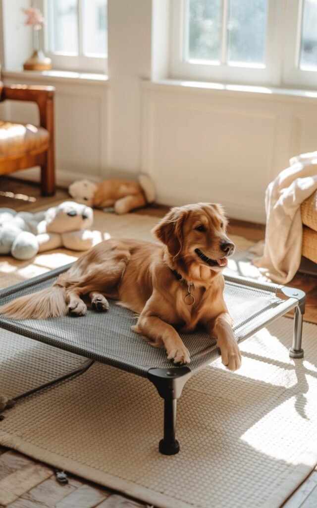 During the warmer months, Max refuses to sleep on the floor. Elevated mesh beds keep him cool and off hot surfaces, perfect for summer or humid climates.