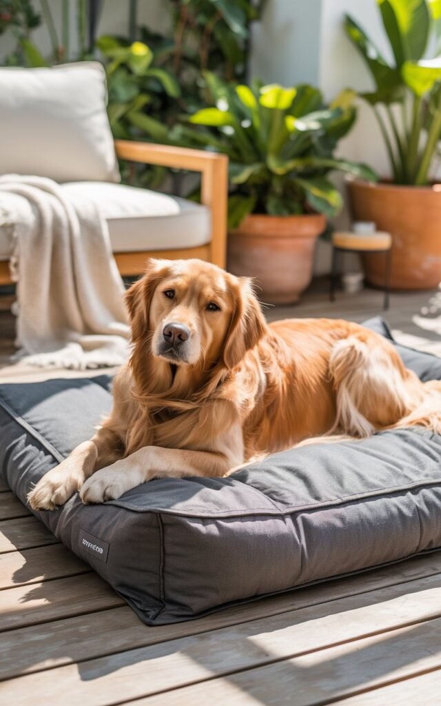 For outdoor naps, Max has a weather-resistant dog bed on the patio. Rain, sun, or muddy paws are no longer a problem, and it dries quickly.