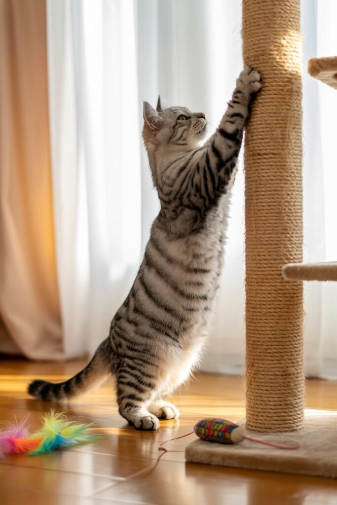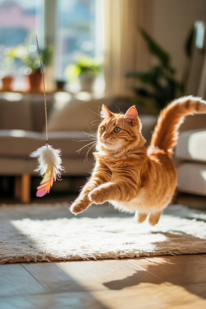 Providing interactive cat toys isn’t just for fun—it helps prevent stress, keeps her body active, and supports a healthy indoor cat lifestyle.