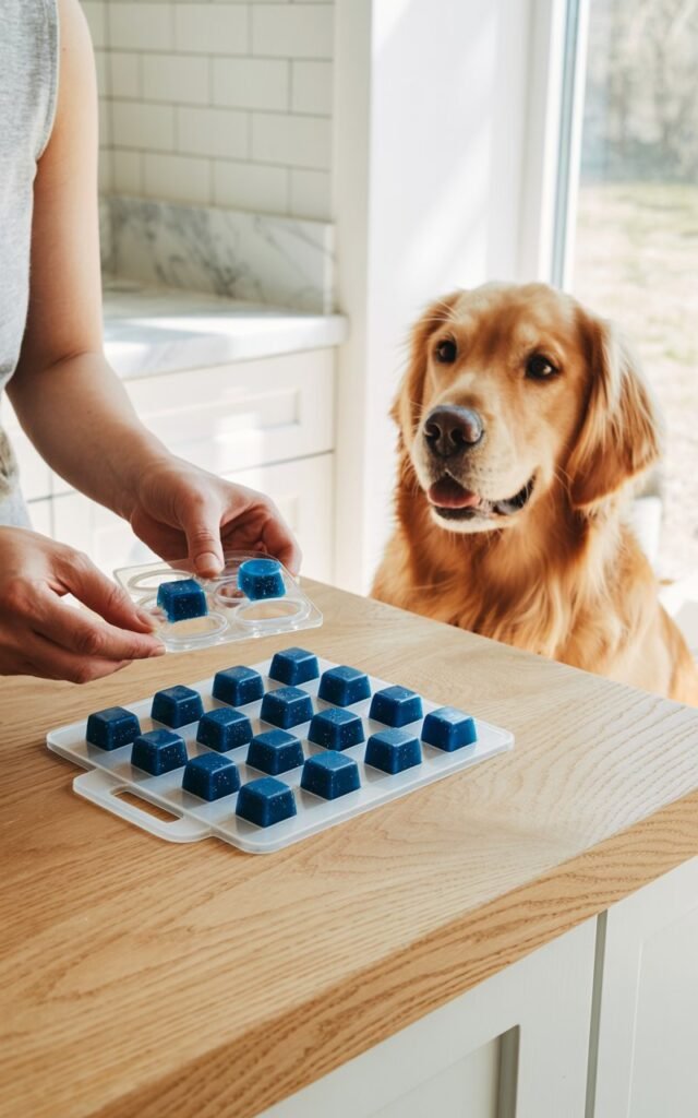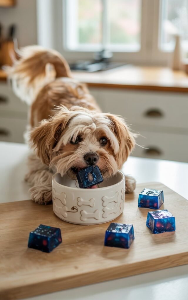 I used silicone molds in fun shapes—bones, hearts, and paw prints. I poured carefully, thinking about how excited Charlie would be when he saw them.