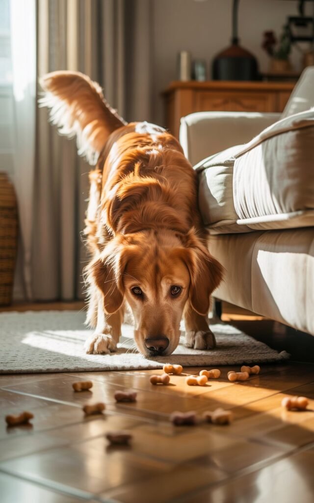 I told my dog to sit, walked into the next room, and hid a couple of treats in easy spots—nothing fancy, just behind a chair and near the table leg.