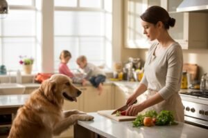 I had just finished cleaning up, the kids were asking for snacks again, and my dog was right there with that “what are we doing next?” energy.