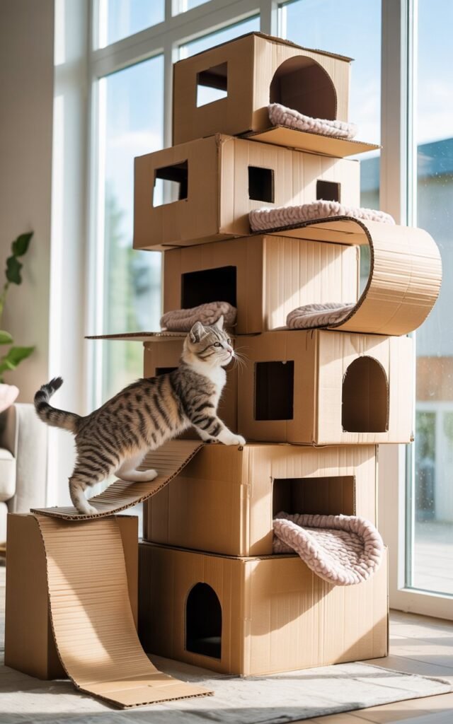 So grab some cardboard, tape, scissors, and maybe a sprinkle of catnip, and let’s get creative!