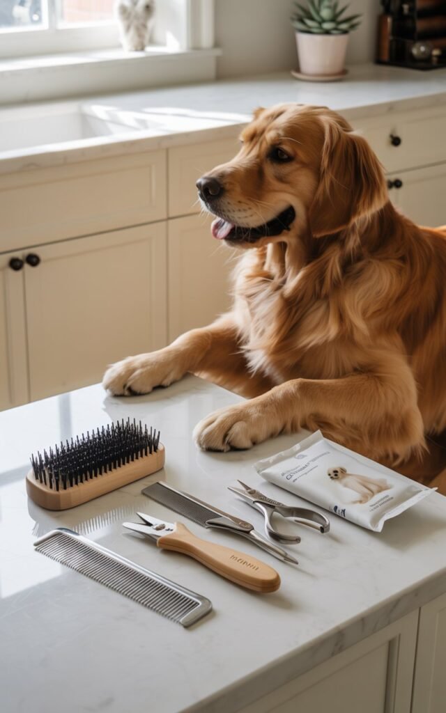 Keywords naturally included: dog grooming essentials, dog brush, dog nail clippers, healthy dog coat