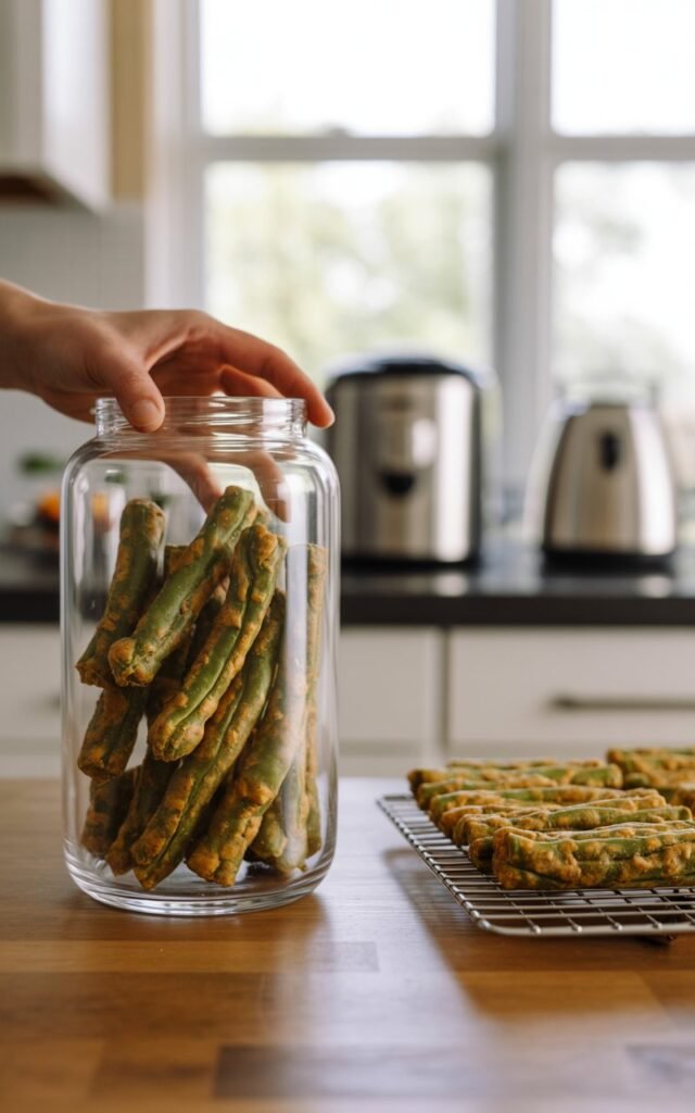 Once my green bean crunchies are fully cooled, I always make sure they’re stored properly so they stay fresh and crunchy for as long as possible.