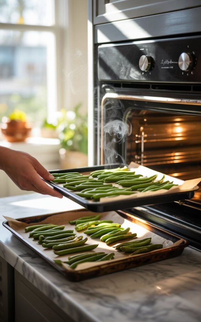 Spacing is another thing I never skip. I spread the green beans out in a single layer on the baking tray so they roast evenly.