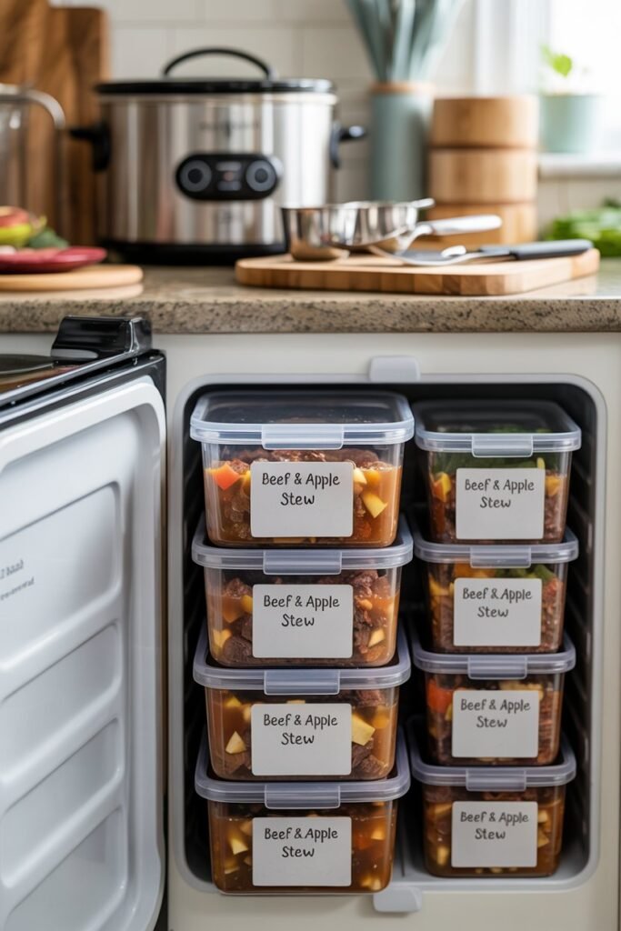 - Use freezer-safe containers or bags