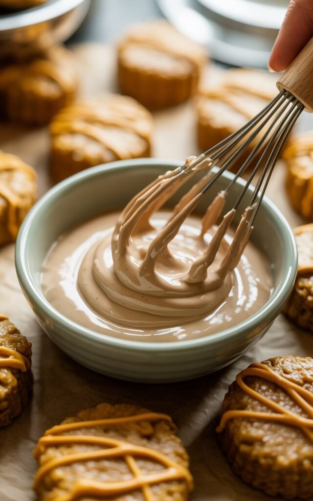 - Spread the Icing – Use a small spoon or spatula to gently cover the cooled treats with a thin layer of the Greek yogurt and peanut butter icing.