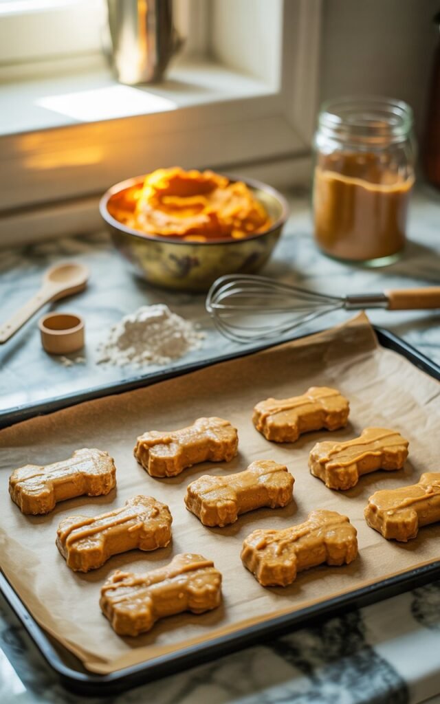 Baking these peanut butter and pumpkin dog treats is simple, and it’s the step that turns soft dough into chewy, flavorful bites your dog will love. Here’s how I do it: