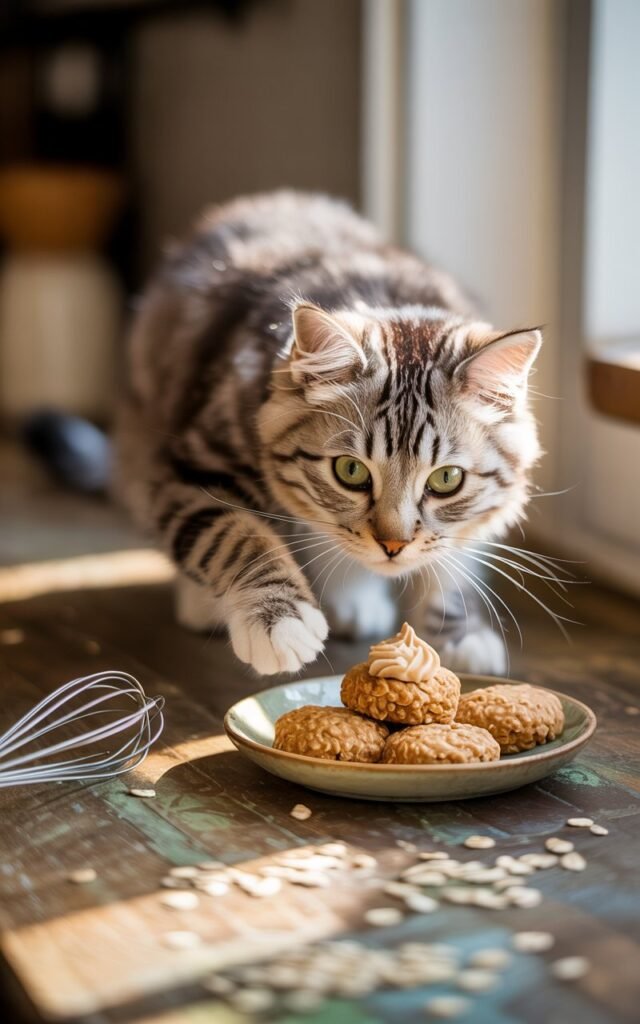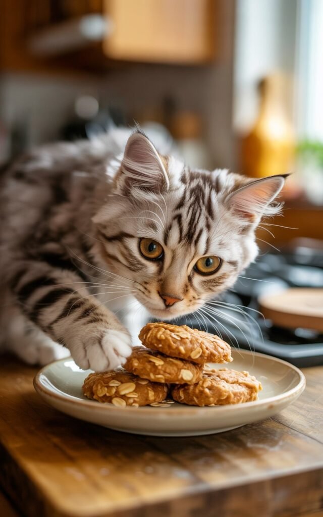 This is honestly my favorite part of making homemade cat treats. After everything is baked and the kitchen starts smelling warm and cozy, I usually place a few small pieces on a plate and call my cats over.