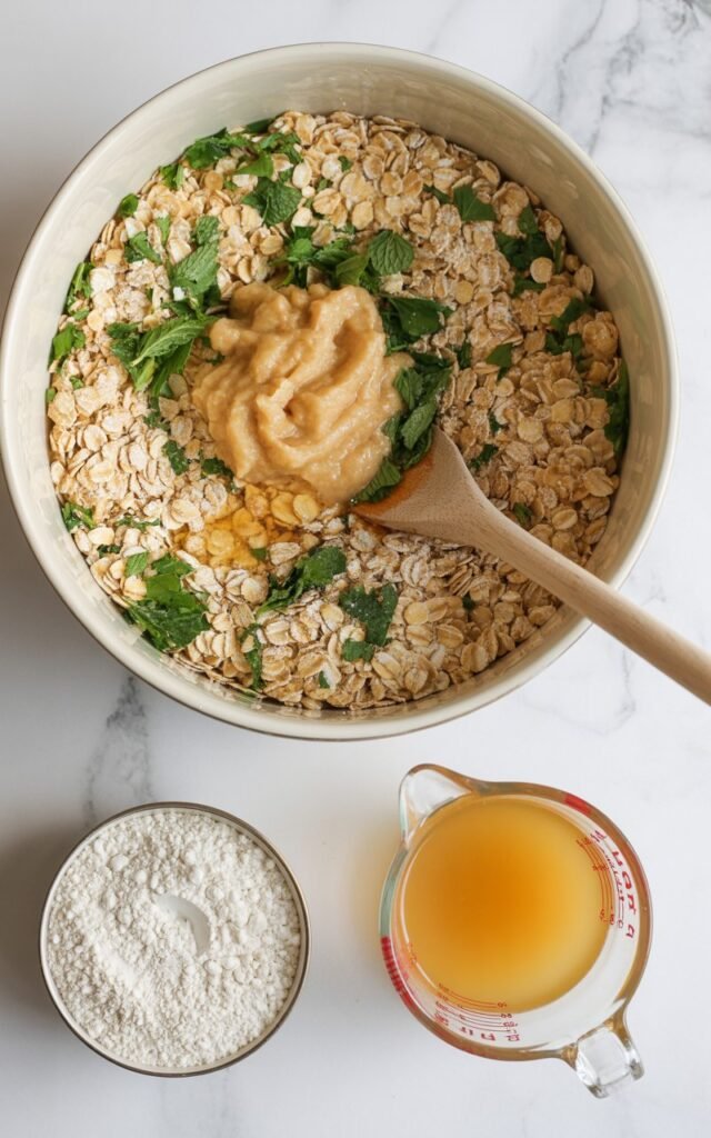 Wash the parsley and mint thoroughly, removing any stems. Chop them finely or pulse briefly in a food processor for even distribution. I like doing this step while my dog sniffs around—it’s part of the fun! - Mix Dry Ingredients