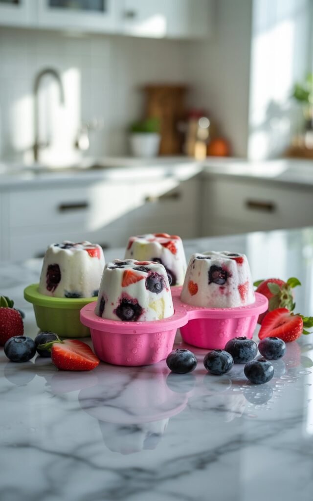 - Spoon the mixture into silicone molds or ice trays.