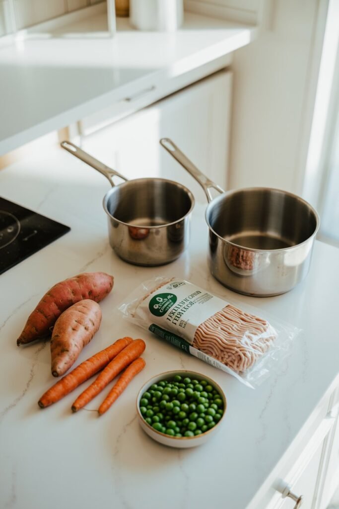To make this quick and tasty turkey and sweet potato dog food, I kept things really simple and used ingredients I could easily find at home or pick up quickly from the store.
