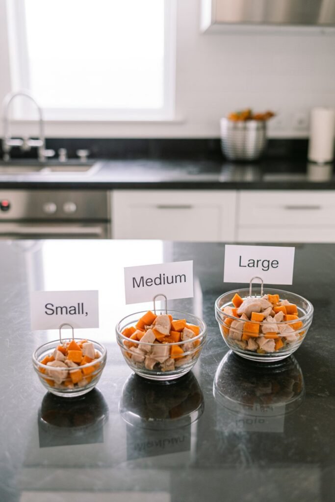 For large dogs, I make sure the portion is bigger but still controlled to avoid overfeeding, weight gain, and digestive issues.