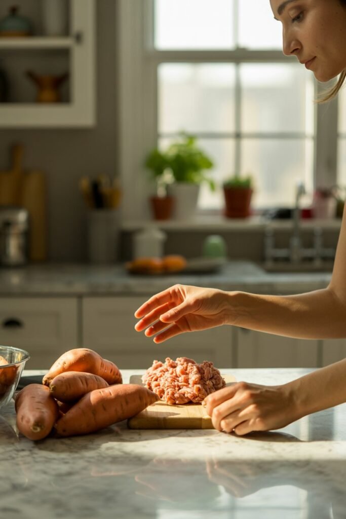I noticed I had simple ingredients like turkey and sweet potatoes in my kitchen all the time, and I started wondering how they could be turned into a balanced, homemade meal.