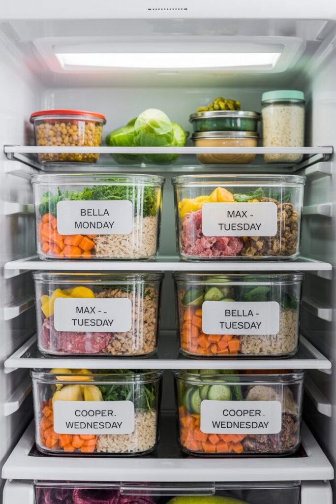 This makes it easy to pull out just what I need for the day and helps with a more organized homemade dog food routine.